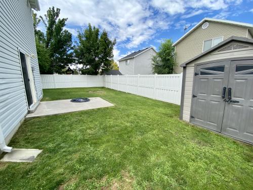 Beautiful 4 bedroom 3 full-bathroom home in quite West Jordan Neighborhood. Multi-level lay out with plenty of natural light. Vaulted ceilings in the living room and kitchen. Kitchen with side-by-side fridge, microwave, and dishwasher. Large family room. Front porch. Fenced backyard with storage shed and patio. Close to a park. 2-car garage, central air conditioning.